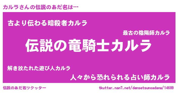 | ファンタジー風あだ名 | 『カルフェル』『カークカルラー』 |