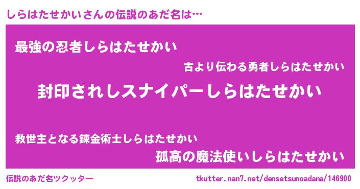 | 胡散臭い通販商品みたいなあだ名 | 『億万長者になれる霊験あらたかなお札…その名も「しらはたせかい」』 |