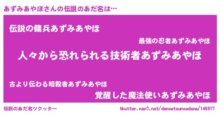 | 胡散臭い通販商品みたいなあだ名 | 『ガンによく効く高麗人参…その名も「あずみあやほ」』 |
