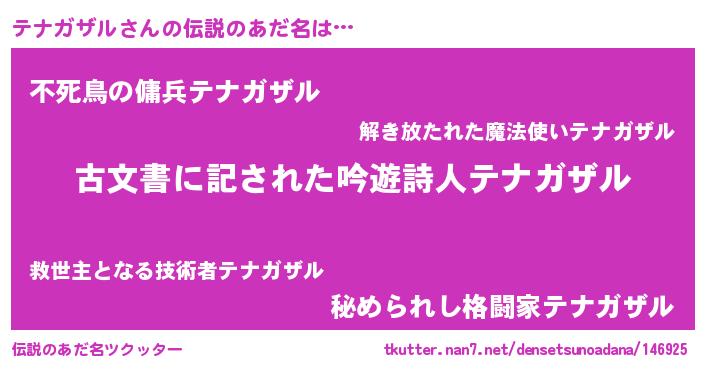 | ファンタジー風あだ名 | 『テナディッシュ』『ゼテナトゥ』 |