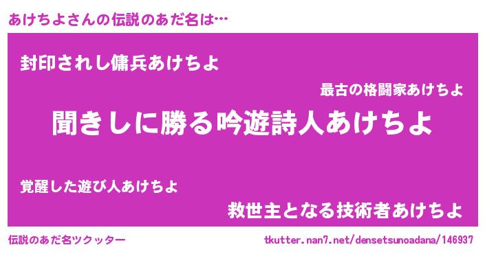 | ヘコむあだ名 | 『あけちよ(小並感)』『あけにー』 |