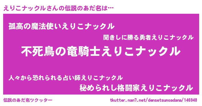 | 意味不明あだ名 | 『住所不定無職えりこナックル(6歳)』 |