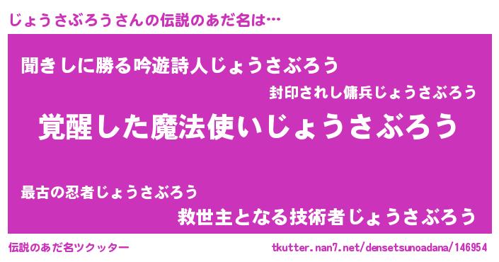 | 男性向けラノベタイトル風あだ名 | 『じょうさぶろうの嫁は女の子じゃないと思った?』 |
