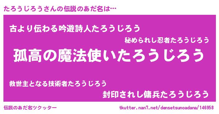 | 意味不明あだ名 | 『とにかく怪しいたろうじろう』 |