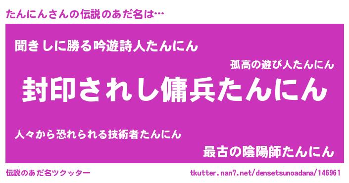 | 意味不明あだ名 | 『自称たんにん』『ペロリンたんにん』 |