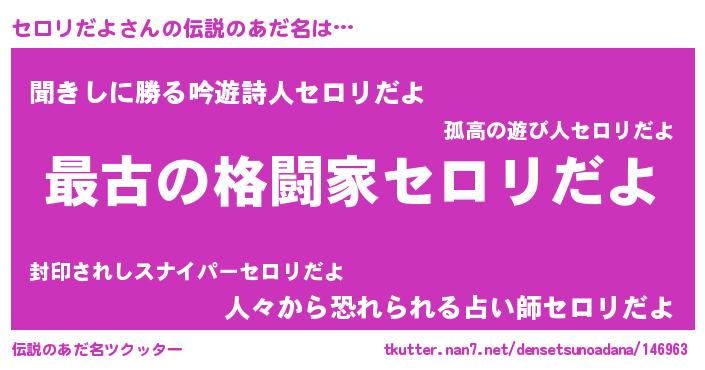 | ファンタジー風あだ名 | 『エターナルセロリダヨー』『ゼセロトゥ』 |