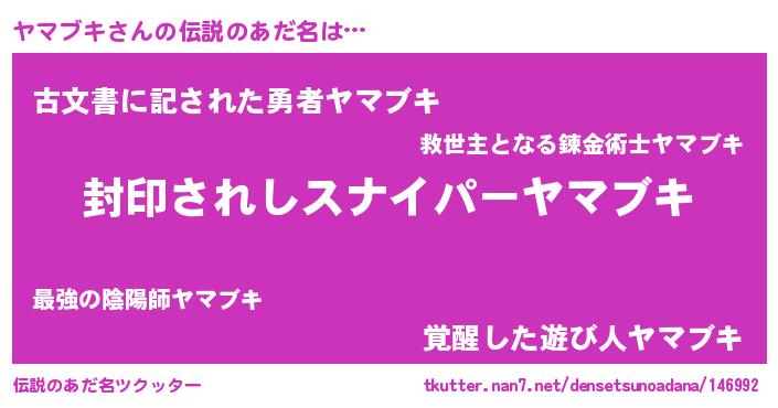| ヒーロー風カッコイイあだ名 | 『スーパーヤマブキ』『ネオヤマブキ』 |