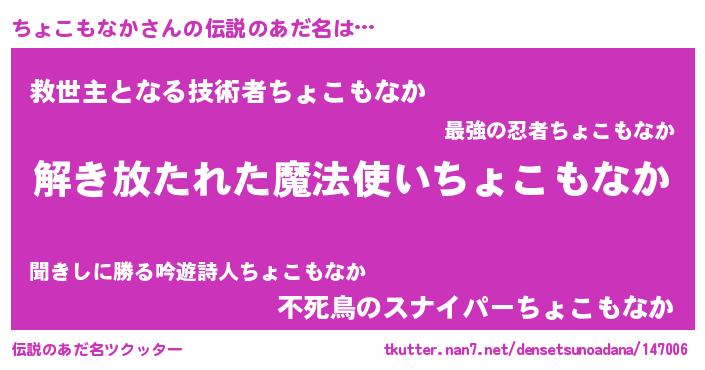 | 意味不明あだ名 | 『自称ちょこもなか』 |
