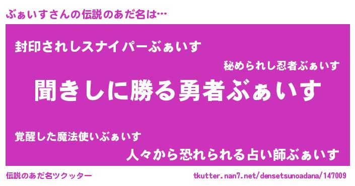 | ヒーロー風カッコイイあだ名 | 『ネオブァイス』『仮面ブァダー』 |