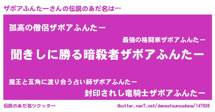 | 意味不明あだ名 | 『自称ザボアふんたー』 |