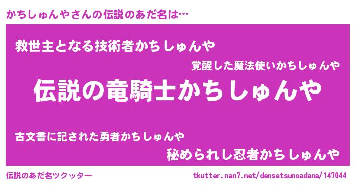 | 男性向けラノベタイトル風あだ名 | 『かちしゅんやの憂鬱』 |