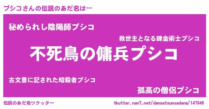 | ファンタジー風あだ名 | 『プシフェル』『エターナルプシコー』 |