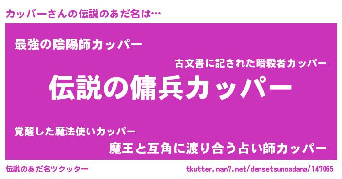 | ファンタジー風あだ名 | 『カッフェル』『エターナルカッパーー』 |