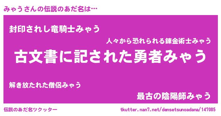 | 意味不明あだ名 | 『住所不定無職みゃう(77歳)』 |