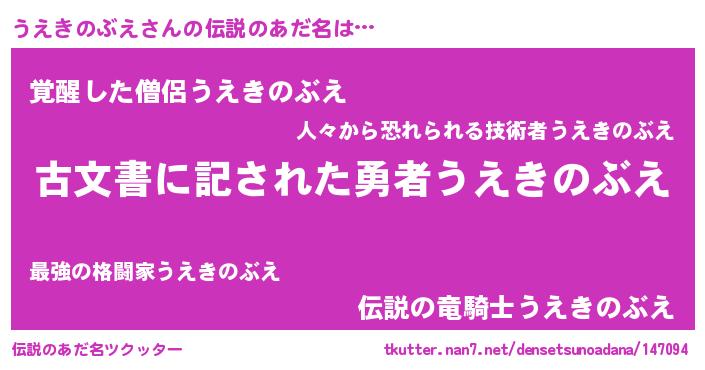 | 意味不明あだ名 | 『永久保存うえきのぶえ』 |