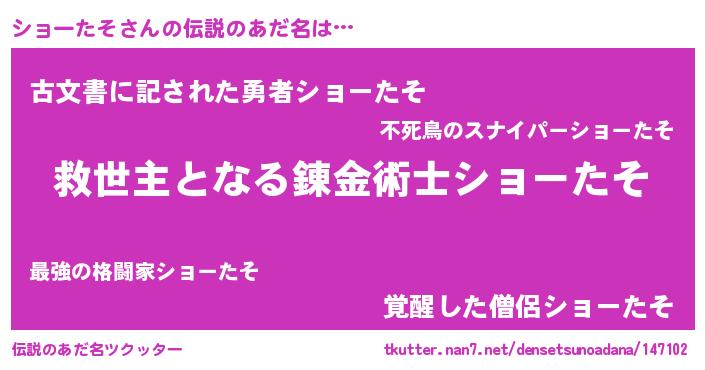 | ヒーロー風カッコイイあだ名 | 『天空の使者ショーたそ』『仮面ショダー』 |
