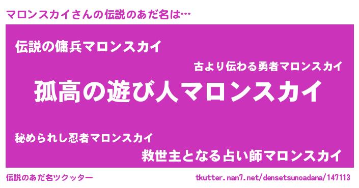 | ヒーロー風カッコイイあだ名 | 『魔戒騎士マロ』『スーパーマロンスカイ』 |