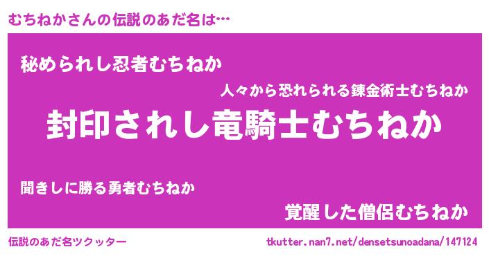 | ヒーロー風カッコイイあだ名 | 『スーパームチネカ』『仮面ムチダー』 |