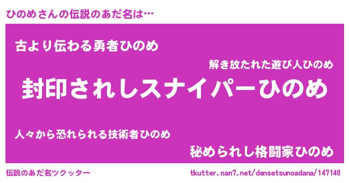 | 意味不明あだ名 | 『ペロリンひのめ』『永久保存ひのめ』 |