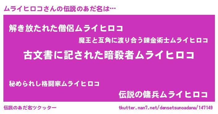| ヒーロー風カッコイイあだ名 | 『ネオムライヒロコ』『魔戒騎士ムラ』 |