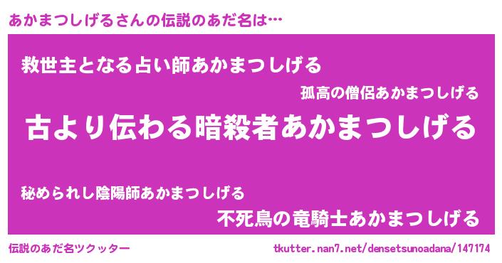 | ヒーロー風カッコイイあだ名 | 『仮面アカダー』『ネオアカマツシゲル』 |