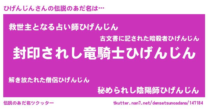 | ヒーロー風カッコイイあだ名 | 『スーパーヒゲンジン』『仮面ヒゲダー』 |