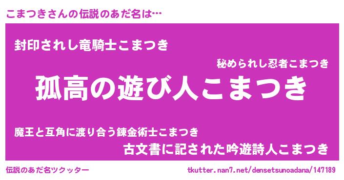 | 女子向けラノベタイトル風あだ名 | 『こまつきは平凡を望む』 |