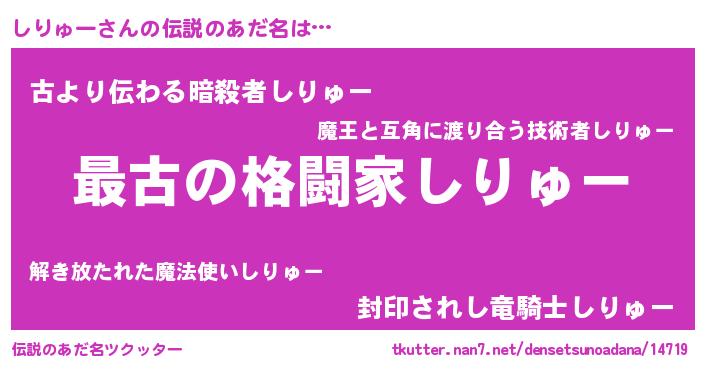 | 意味不明あだ名 | 『しりゅーフォーエバー』 |