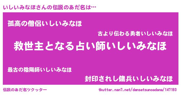 | 男性向けラノベタイトル風あだ名 | 『この素晴らしい世界にいしいみなほを!』 |