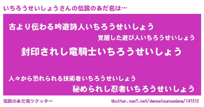 | 胡散臭い通販商品みたいなあだ名 | 『あなたにだけ特別に提供する100年もののヴィンテージワイン…その名も「いちろうせいしょう」』 |