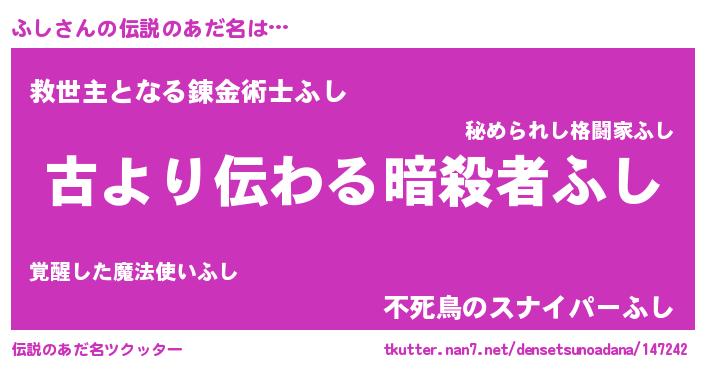 | ヒーロー風カッコイイあだ名 | 『ネオフシ』『慈愛の使者ふし』 |