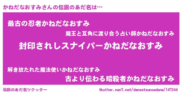 | 欧米人風あだ名 | 『ケンブリッジかねだなおすみ』 |
