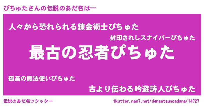 | 男性向けラノベタイトル風あだ名 | 『やはりぴちゅたの青春ラブコメはまちがっている 』 |