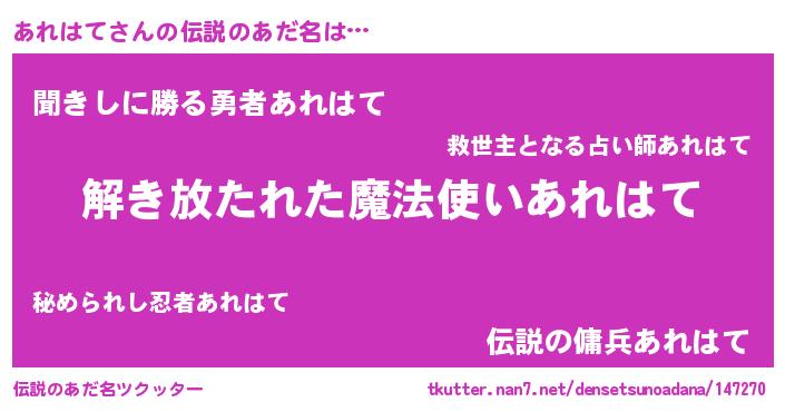 | 意味不明あだ名 | 『とにかく怪しいあれはて』 |