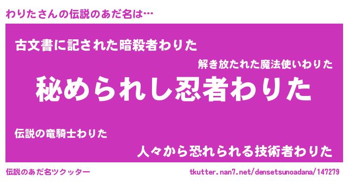 | ヒーロー風カッコイイあだ名 | 『仮面ワリダー』『ウルトラわりたマン』 |