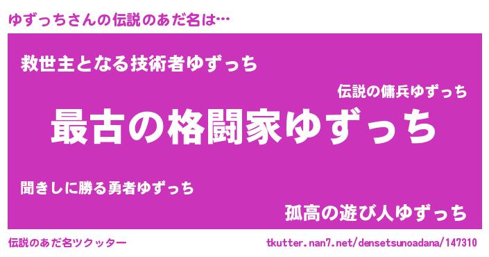 | ヒーロー風カッコイイあだ名 | 『ウルトラゆずっちマン』『黄金騎士ユズ』 |