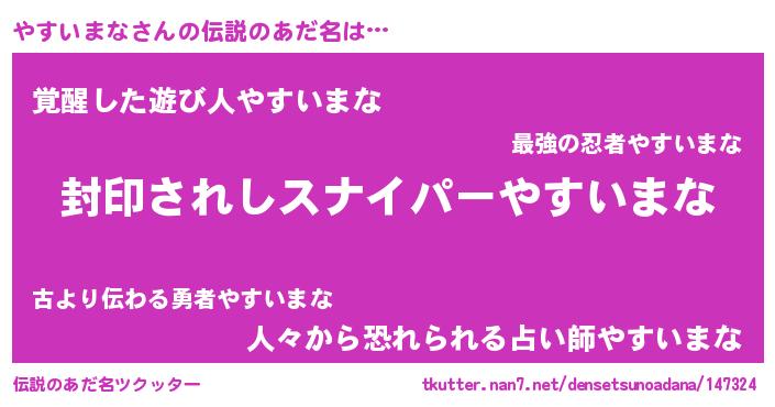 | ヒーロー風カッコイイあだ名 | 『スーパーヤスイマナ』『仮面ヤスダー』 |