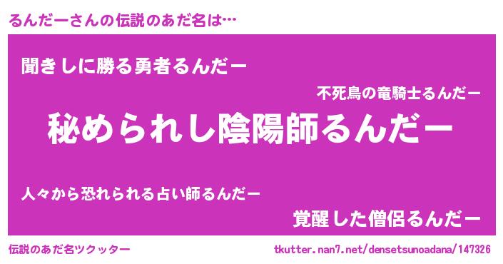 | 意味不明あだ名 | 『るんだーフォーエバー』『自称るんだー』 |