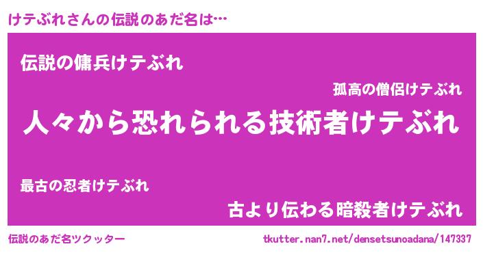 | 男性向けラノベタイトル風あだ名 | 『緋弾のケテブレ』『けテぶれの憂鬱』 |