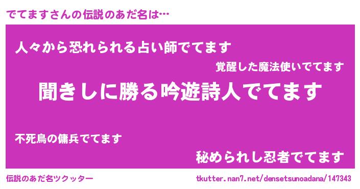 | 男性向けラノベタイトル風あだ名 | 『でてますという概念が存在しない退屈な世界 』 |