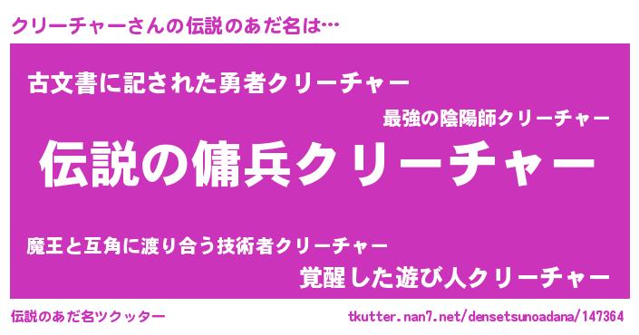 | ヒーロー風カッコイイあだ名 | 『スーパークリーチャー』『暗黒騎士クリ』 |