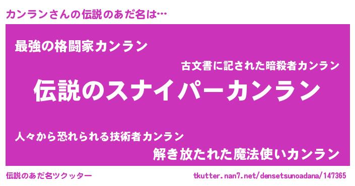 | 意味不明あだ名 | 『住所不定無職カンラン(89歳)』 |