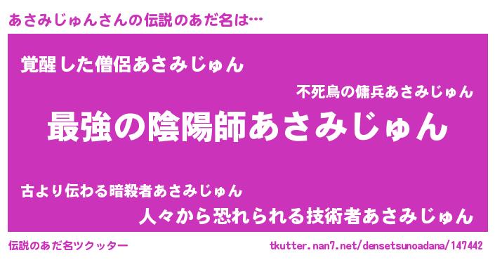 | 男性向けラノベタイトル風あだ名 | 『Re:あさみじゅんから始める異世界生活』 |