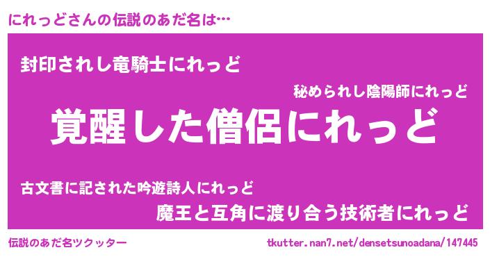 | ピコ太郎風あだ名 | 『ニレ二郎』『ニコ五郎』『ニニ太郎』 |