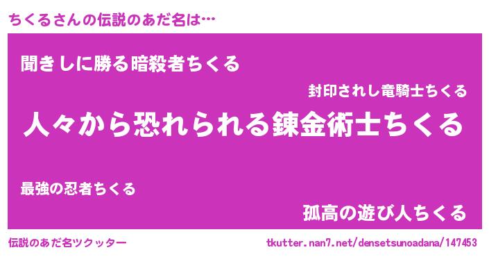 | ヘコむあだ名 | 『ちくる(苦笑)』『ちくを』『牛乳』 |