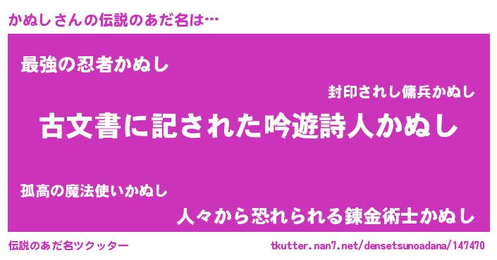 | ヘコむあだ名 | 『かぬし(笑)』『酢こんぶ』『かぬお』 |