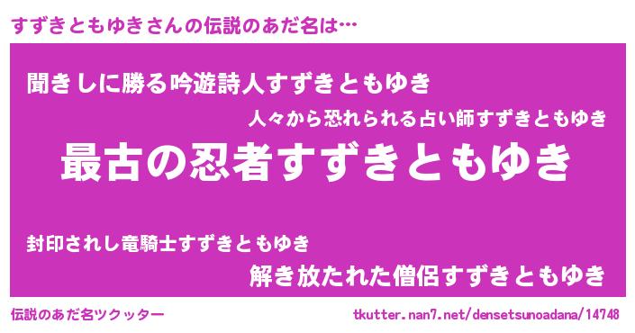 | 肩書あだ名 | 『すずきともゆき総統』 |