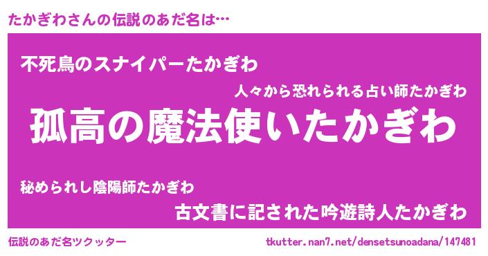| ポケモン風あだ名 | 『ヒタカギワ』『タカチュウ』 |