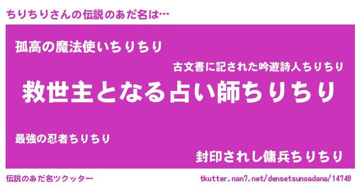 | ポケモン風あだ名 | 『チックウザ』『ヒチリチリ』 |
