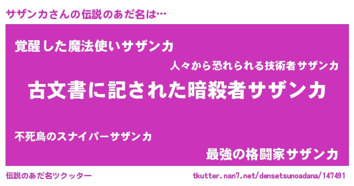 | ファンタジー風あだ名 | 『サザディッシュ』『ゼサザトゥ』 |
